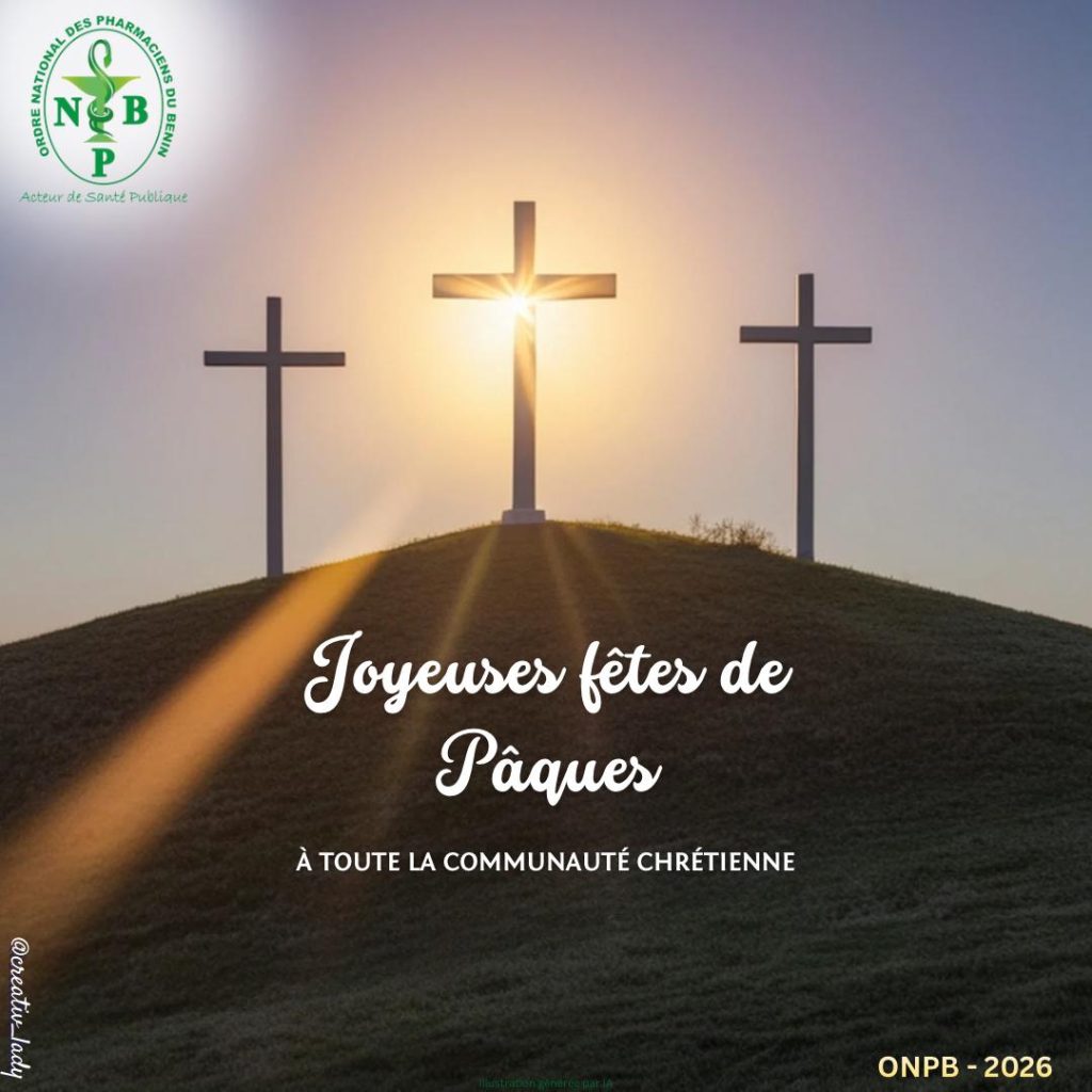 En ce temps de célébration et de renouveau que représente la fête de Pâques, l’Ordre National des Pharmaciens du Bénin tient à adresser ses vœux les plus chaleureux à l’ensemble de la communauté chrétienne.