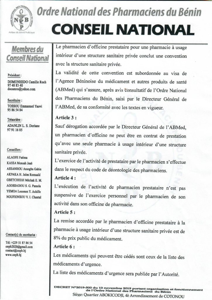 Ordre National des Pharmaciens du Bénin