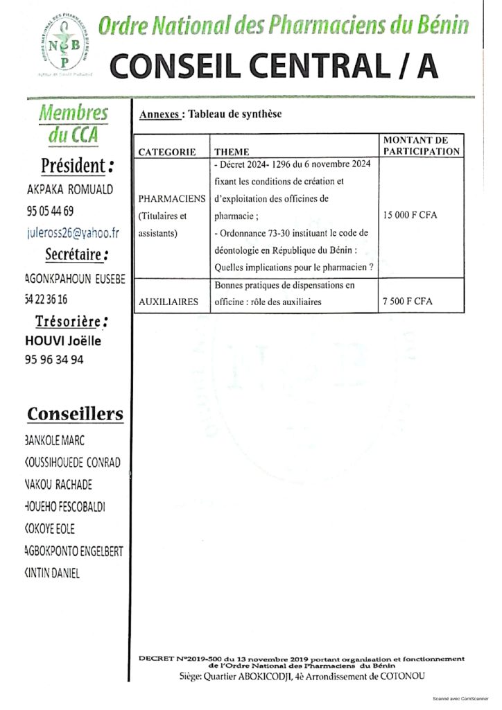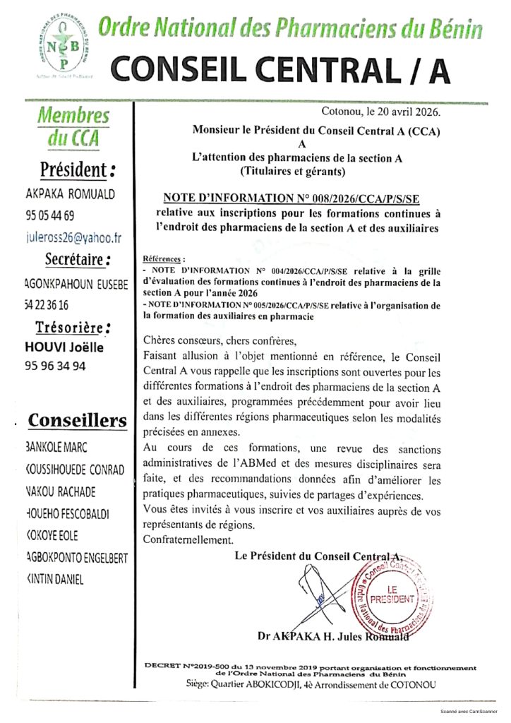 NOTE D’INFORMATION N° 008/2026/CCA/P/S/SE