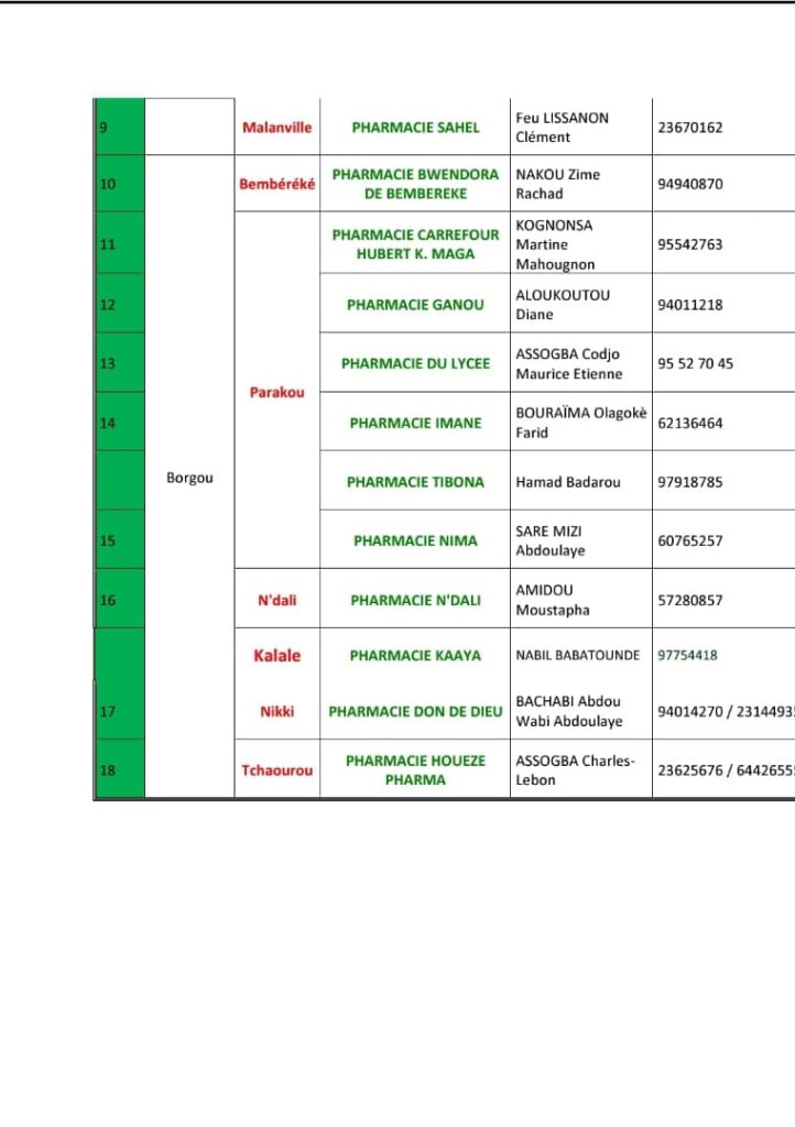 PROGRAMME DE GARDE (ATACORA/DONGA/BORGOU/ALIBORI) DU 21 AU 27 AVRIL