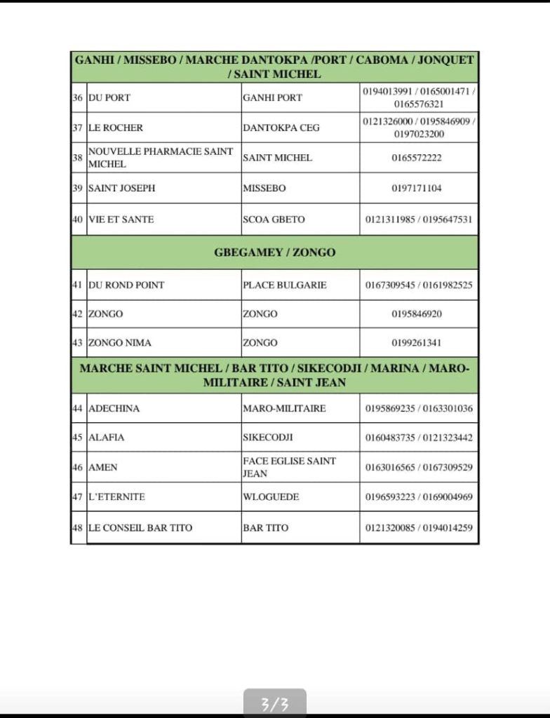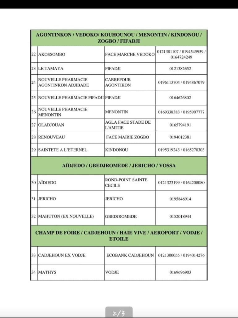 PROGRAMME DE GARDE (ATLANTIQUE) DU 20 AU 26 AVRIL 2026