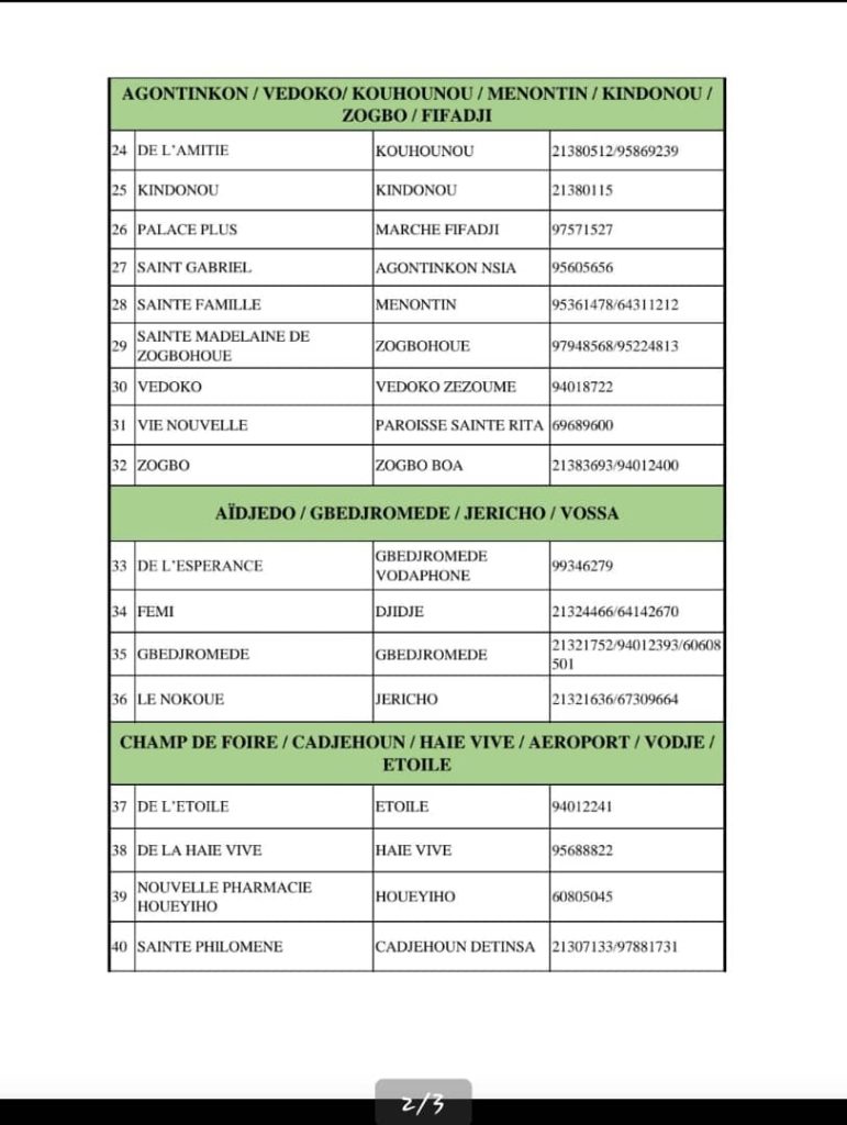 PROGRAMME DE GARDE (ATLANTIQUE) DU 20 AU 26 AVRIL 2026