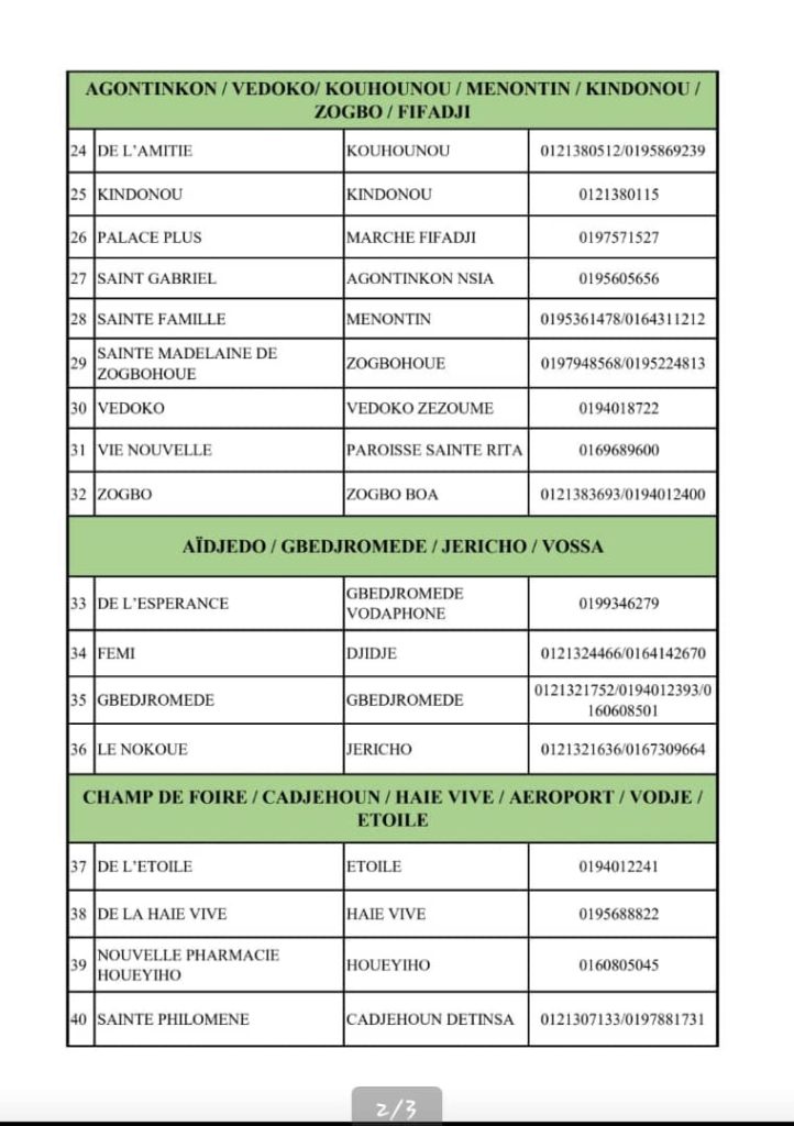PROGRAMME DE GARDE (ATLANTIQUE) DU 20 AU 26 AVRIL 2026