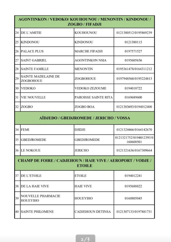 PROGRAMME DE GARDE (ATLANTIQUE) DU 20 AU 26 AVRIL 2026