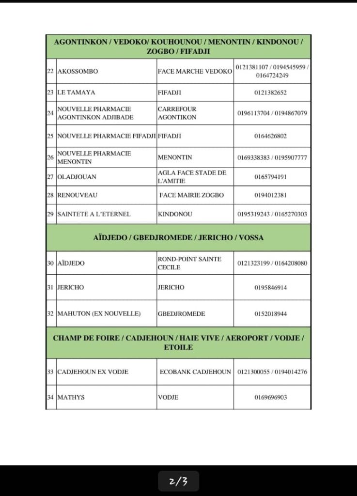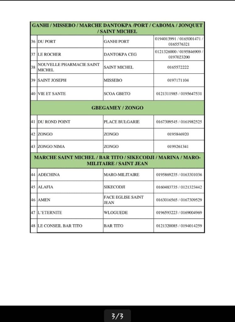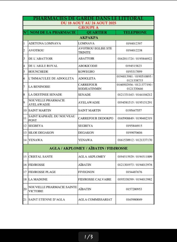 PROGRAMME DE GARDE (ATLANTIQUE) DU 20 AU 26 AVRIL 2026