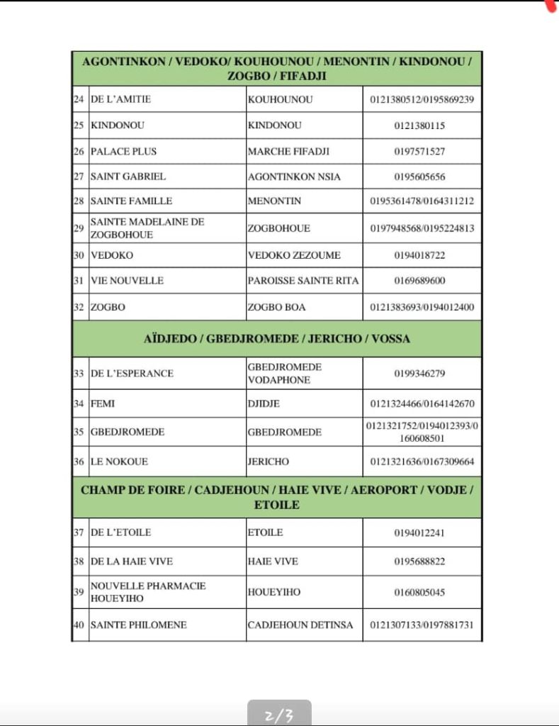 PROGRAMME DE GARDE (ATLANTIQUE) DU 20 AU 26 AVRIL 2026