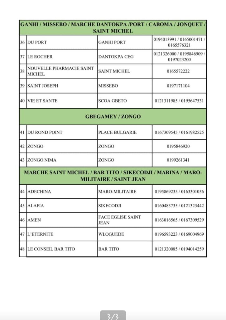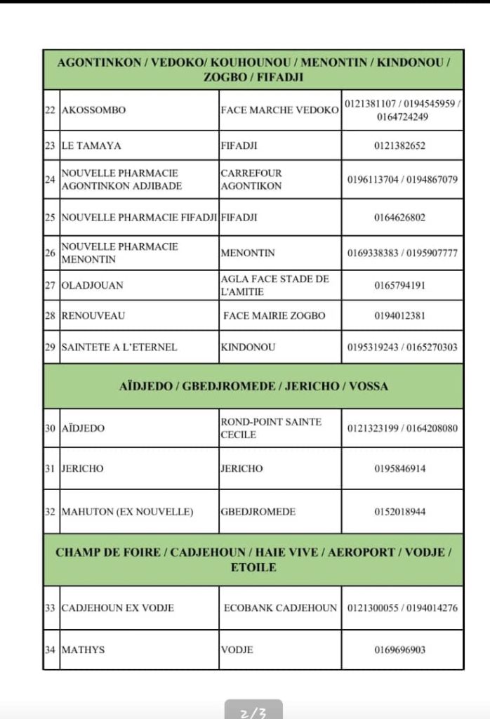 PROGRAMME DE GARDE (ATLANTIQUE) DU 20 AU 26 AVRIL 2026