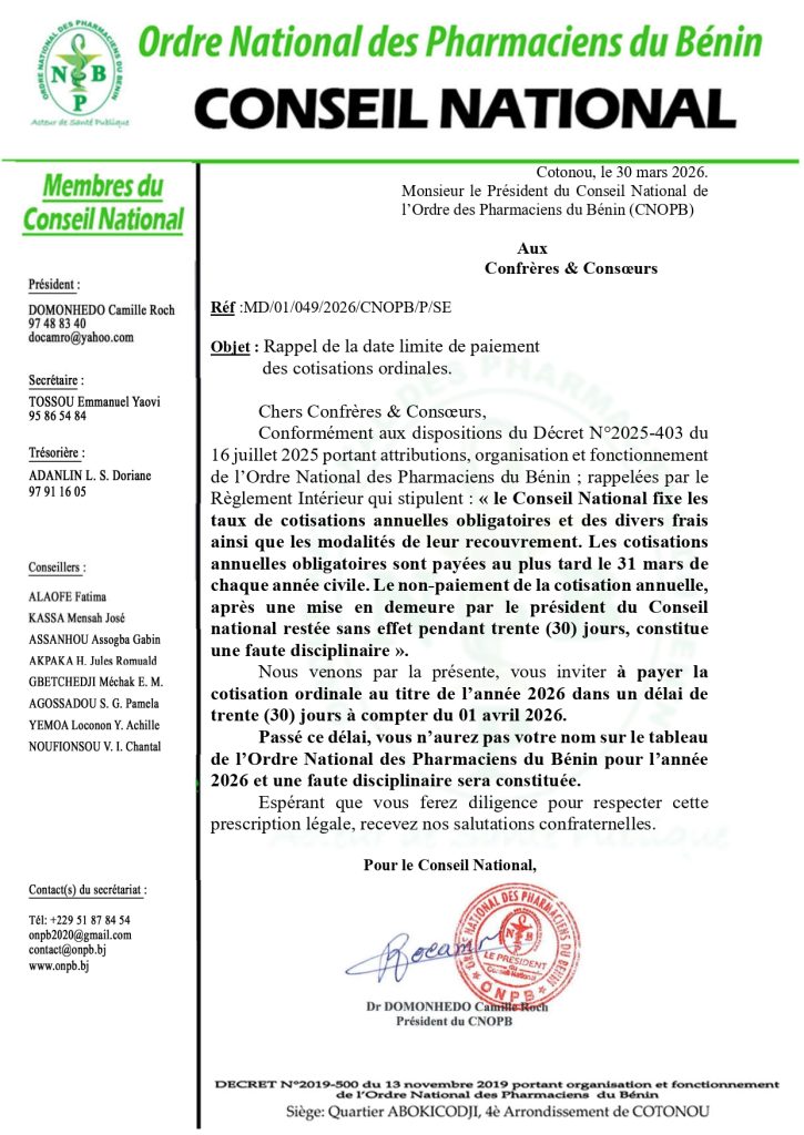 Ordre National des Pharmaciens du Bénin